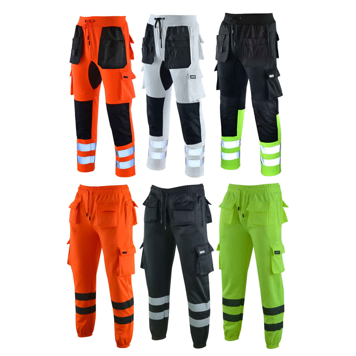 MS9 H1 Men's Hi Viz Vis High Visibility Fleece Regular Fit Work Cargo Painter Trousers Joggers Bottoms